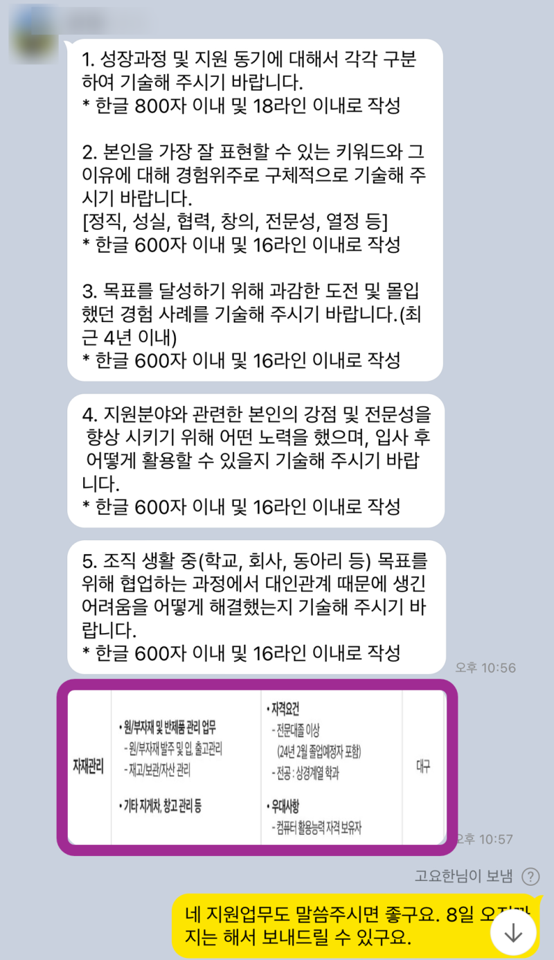 >> 피드백 및 수정: 완성된 자소서를 전달드리고, 지원자님의 의견을 반영하여 추가 수정 과정을 거칩니다.