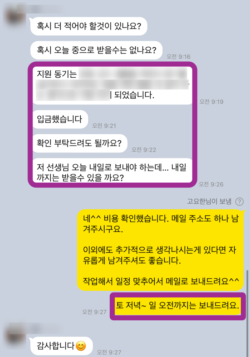 진짜 이건 거의 대필 수준으로 갈아엎었어요! 고객님이 전에 쓰셨던 자소서를 들고 오셨는데, 글자 수도 안 맞고 문장도 그대로 첨삭하면서 거의 다시 짰다고 봐야 해요 제발 다음엔 하루 전에는 와주셔요..! 진짜 그래야 저도 여유 있게 도와드릴 수 있거든요