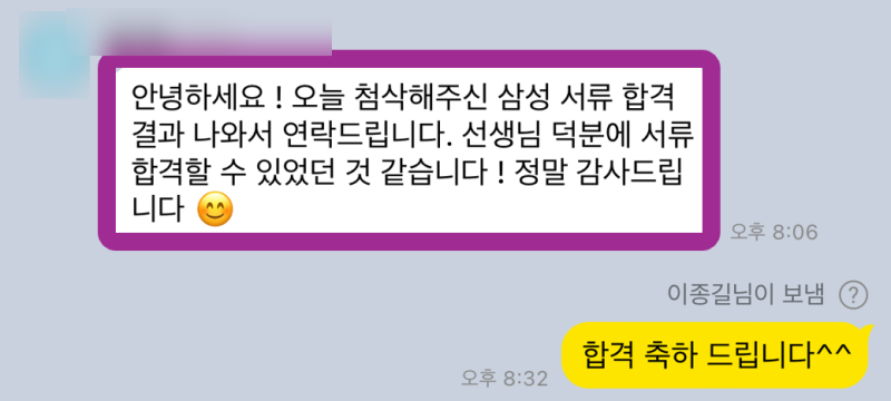 저는 매년 대기업, 공기업 포함 여러 기업 및 채용 합격 다수를 만들어내고 있습니다! 저의 전문적인 컨설팅을 통해 여러분도 합격의 기쁨을 누릴 수 있습니다. 수백 건의 합격 사례를 바탕으로, 최적의 자소서와 면접 전략을 제공해 드립니다.
