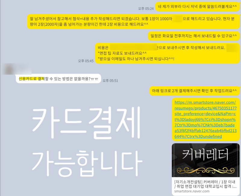 - 자기소개서 대필: 고객의 강점과 경험을 바탕으로 완성도 높은 자소서 작성