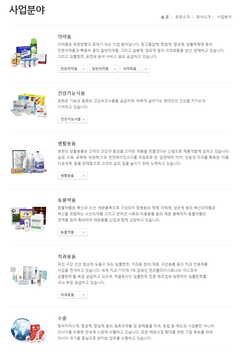 유한양행의 주요 사업 분야는 다음과 같습니다: