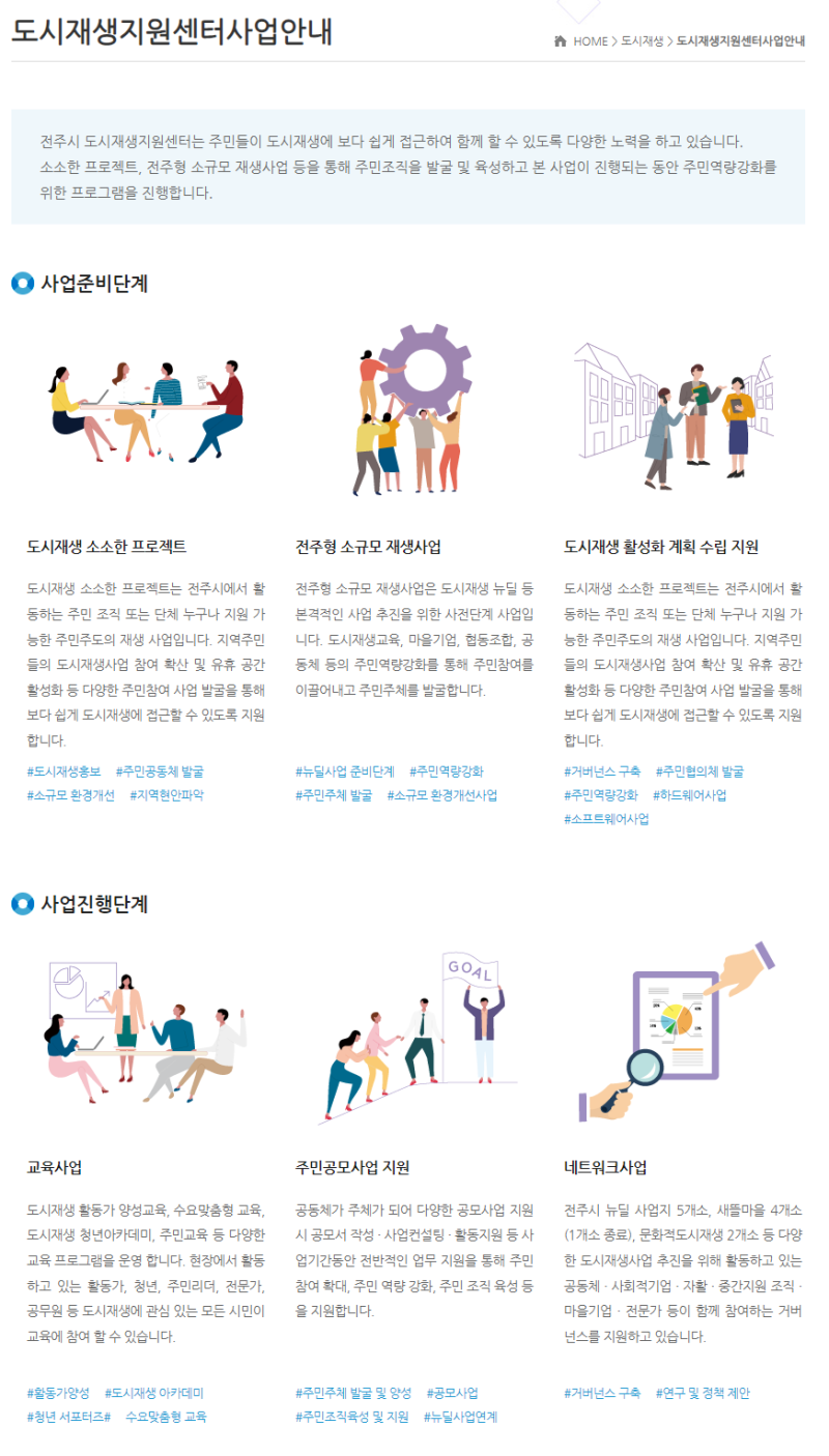 구체적으로, 전주도시재생지원센터는 다음과 같은 사업들을 추진하고 있습니다:
