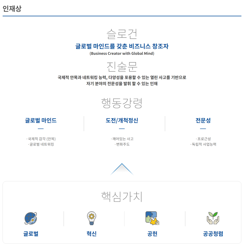 - 글로벌 전문가: 국제 감각과 외국어 능력을 갖춘 인재