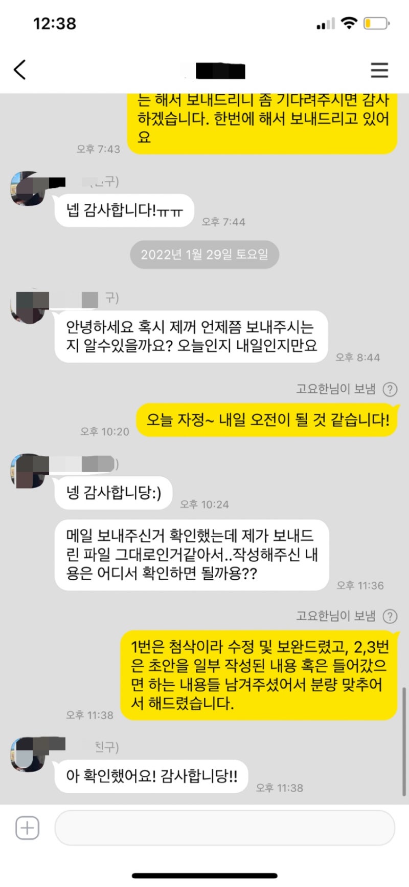 • >> **초안 전달 및 피드백**: 1차 결과물 전달 후 상세한 피드백을 통해 완성도를 높여갑니다.