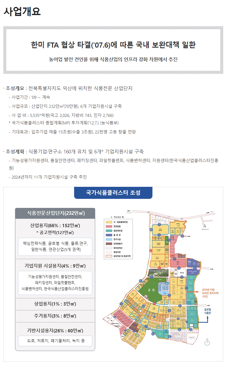 ✅ 주요 사업: 국가식품클러스터 조성 및 운영, 식품 기능성 평가 지원, 식품 기업 성장 지원, 연구개발 및 기술 이전, 인력 양성 등