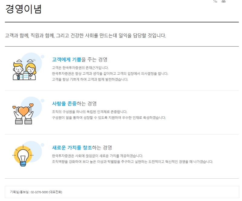 - 핵심가치: 고객 중심, 혁신, 정직, 프로정신