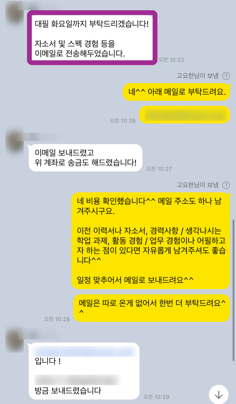 1:1 자소서 컨설팅 의뢰 과정